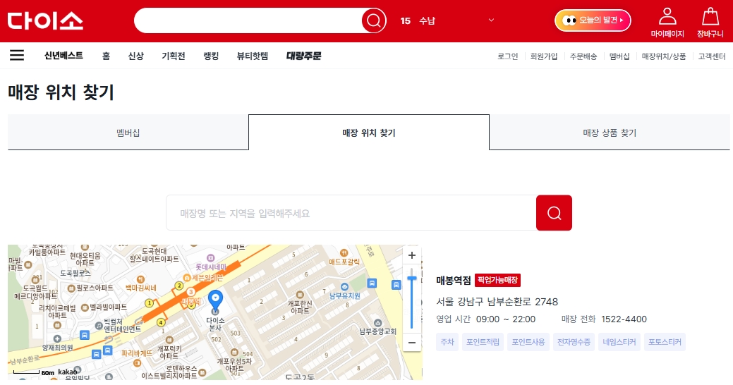 "아래 버튼 클릭 시 다이소 매장 위치 찾기 페이지로 이동합니다"