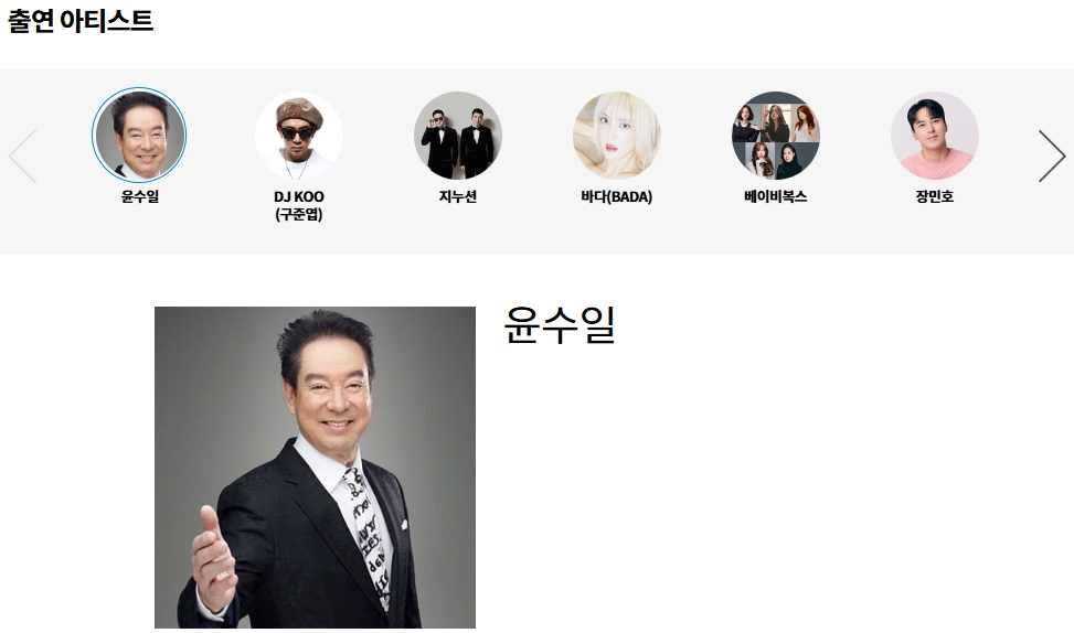 다양한 장르의 아티스트가 참여하여, 연령과 취향을 초월한 무대를 제공합니다. 추억의 가수들과 현재 톱 아이돌이 함께하는 공연은 가족 모두가 즐길 수 있는 완벽한 연말 이벤트입니다.